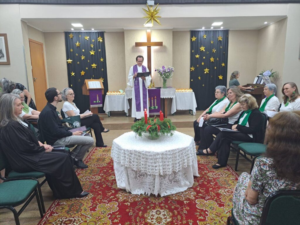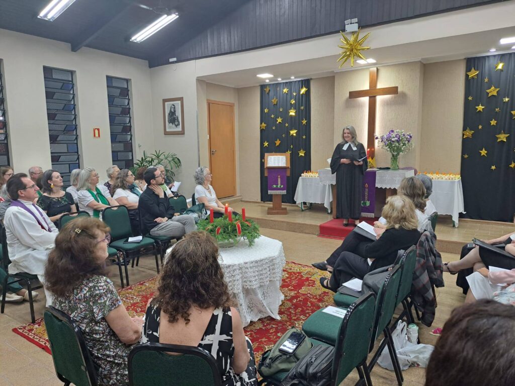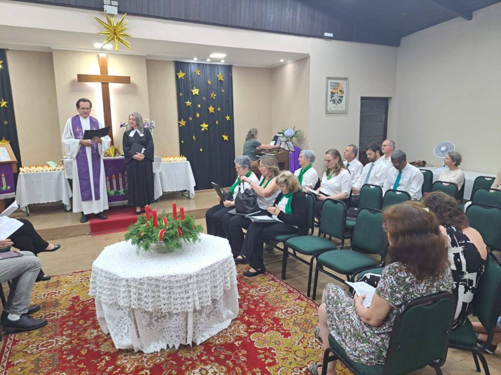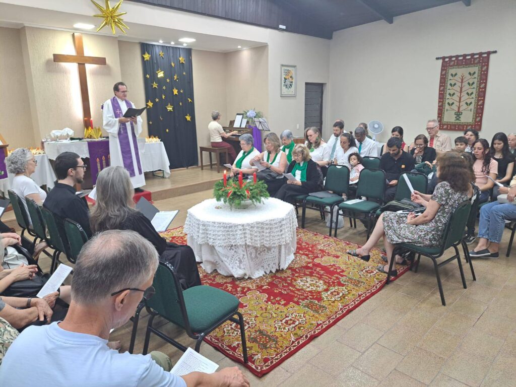 A pregação foi conduzida pela pastora Mirian Ratz, secretária do Ministério com Ordenação da IECLB, que trouxe uma mensagem sobre o sentido do Advento. O culto foi organizado e oficiado pelo pastor Enos Heidemann, que acolheu a comunidade e as pessoas convidadas.
