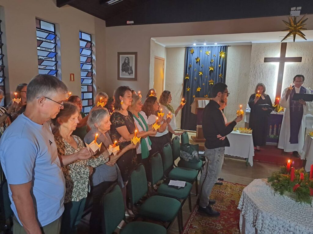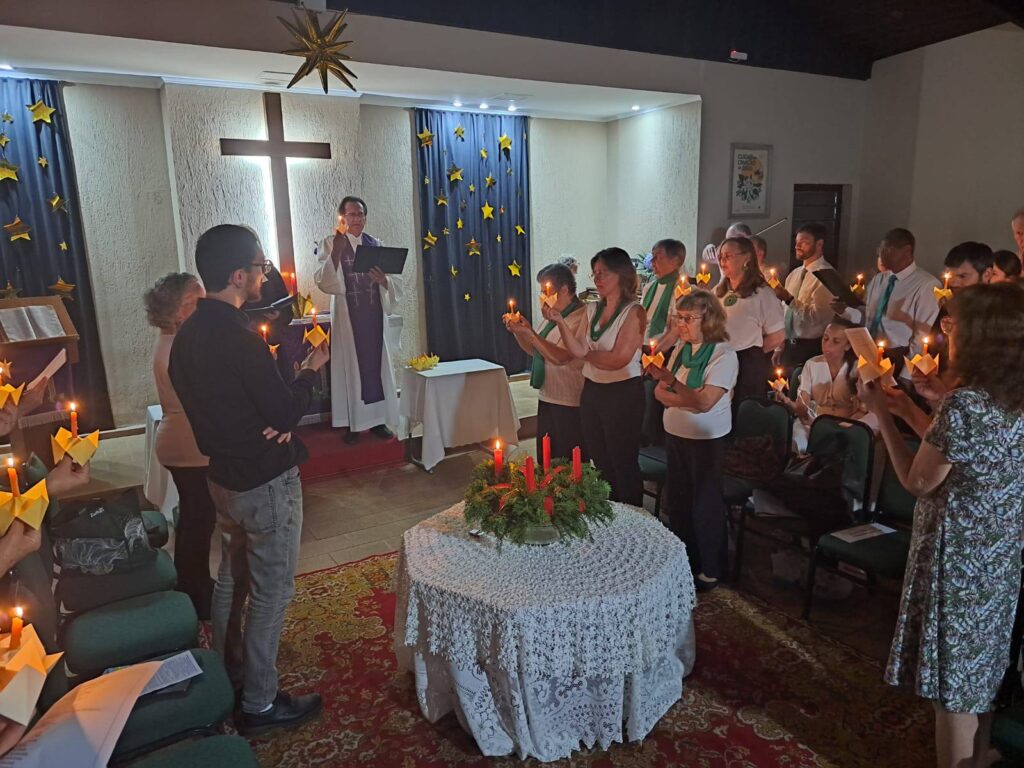 A Comunidade Evangélica de Confissão Luterana São Marcos, em Porto Alegre, celebrou no sábado, 29 de novembro, o Culto de Advento sob o tema “Advento e Natal têm brilho!”. A noite foi marcada por música, espiritualidade e comunhão, abrindo de forma especial o tempo de preparação para o Natal.