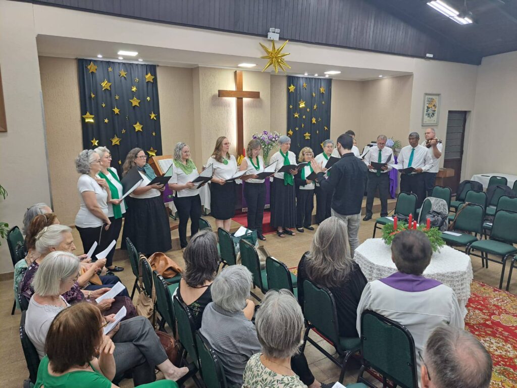 A celebração contou com a participação do Coral da Comunidade São Mateus, que contribuiu para a atmosfera de encanto e reflexão. A organista Jeanine Franke Mundstock e a pianista Arione Regina de Oliveira também abrilhantaram o culto.