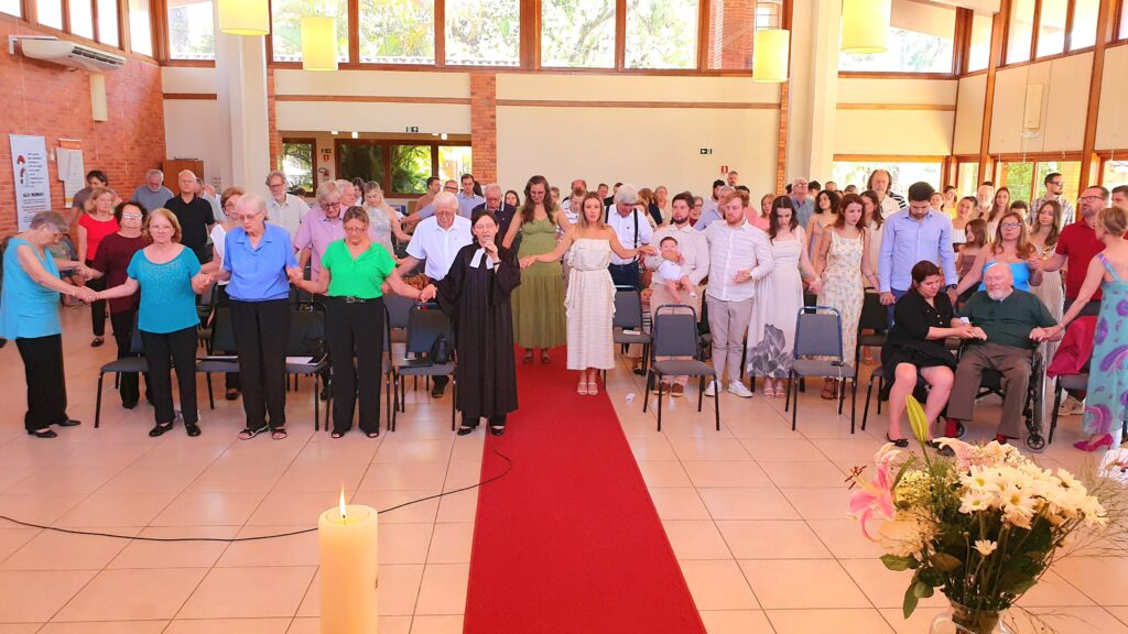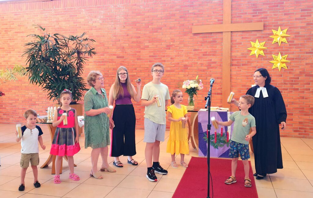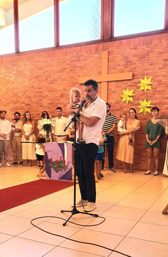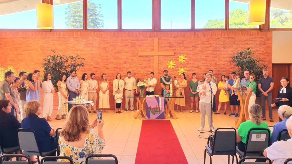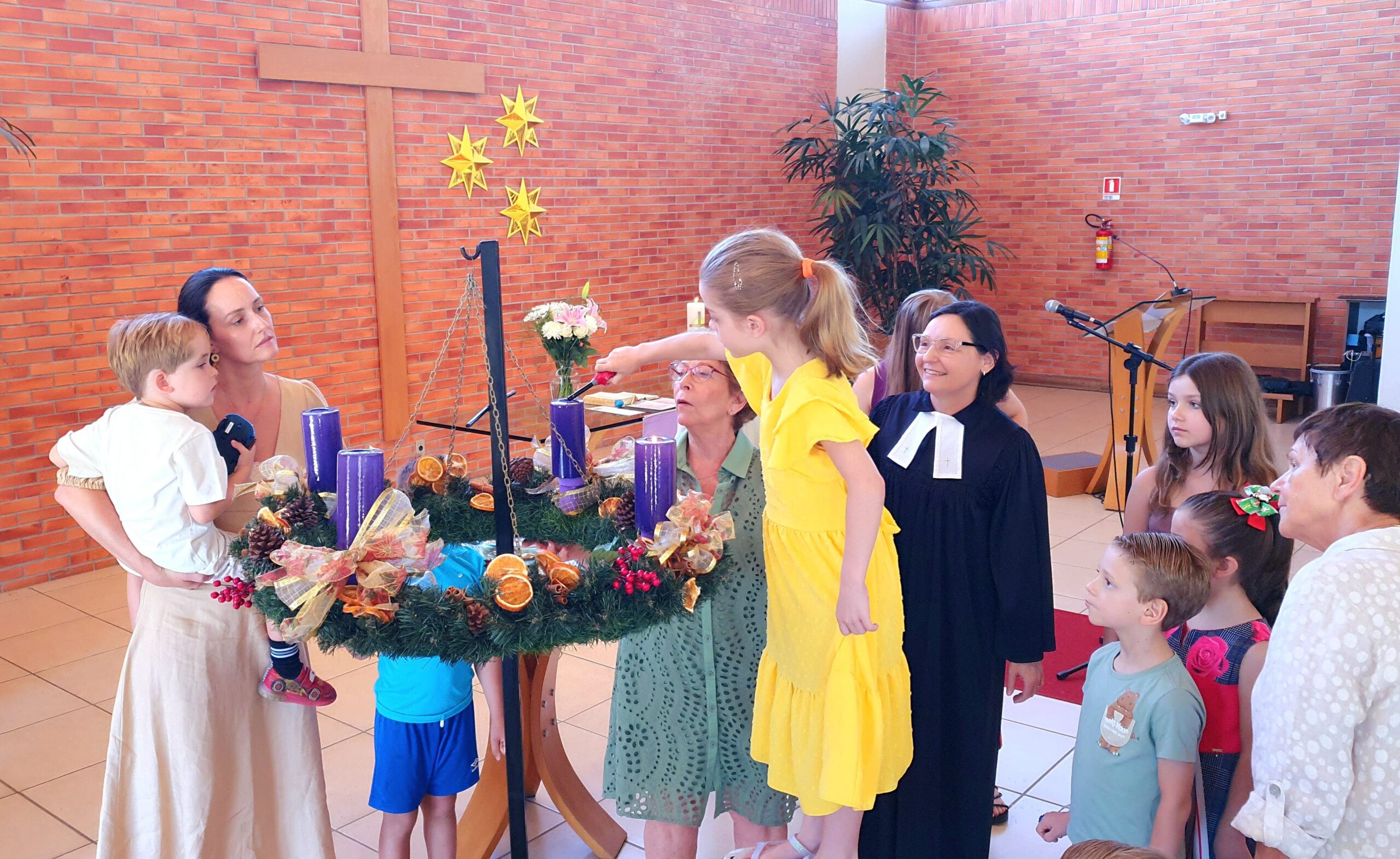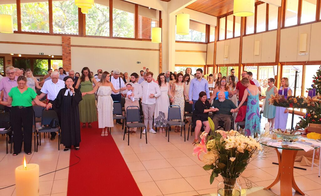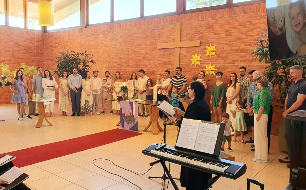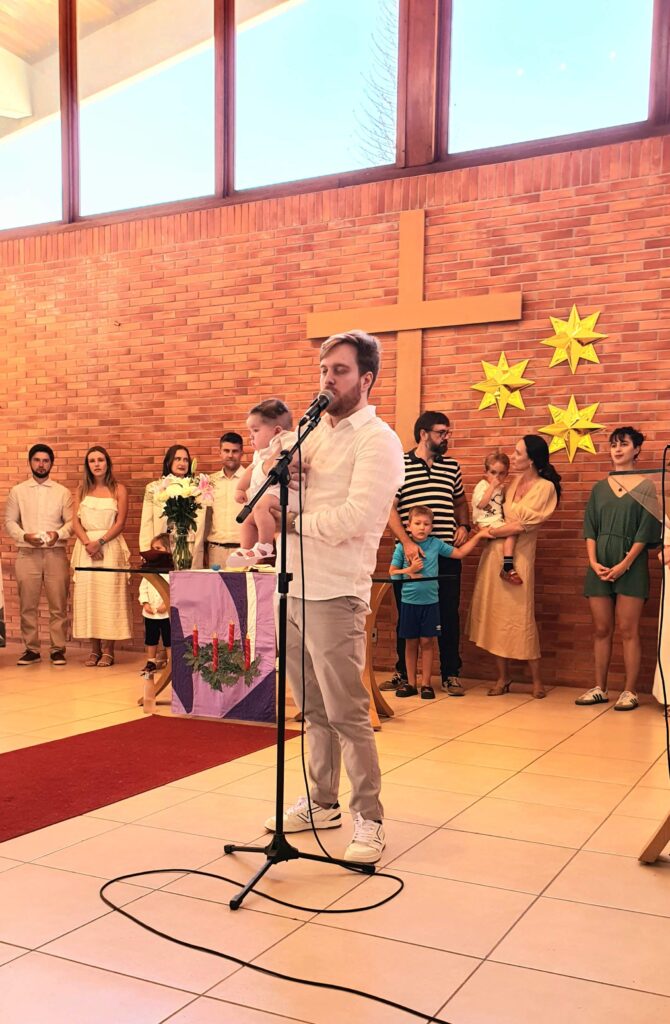 Os batizados de quatro crianças foram motivo de muita alegria e a música do Coro São Lucas tornou ainda mais leve e celebrativa a vivência do 3º Domingo de Advento na Comunidade Evangélica de Confissão Luterana São Lucas em Porto Alegre. A celebração ocorreu no dia 13 de dezembro.