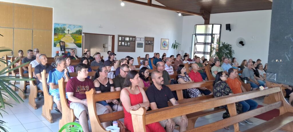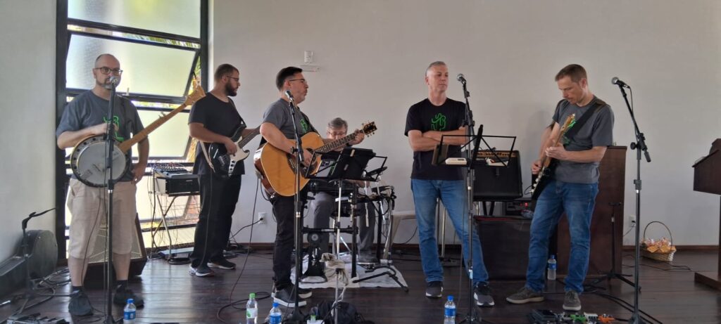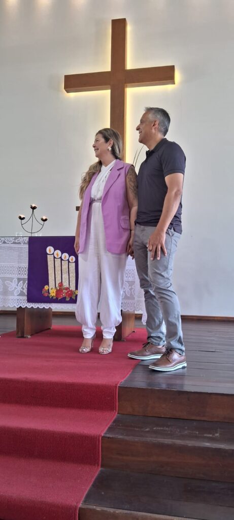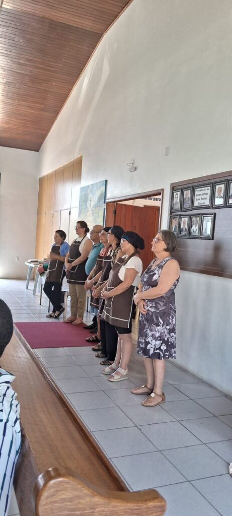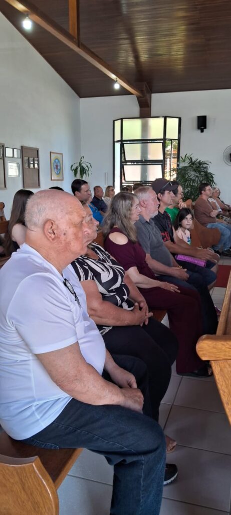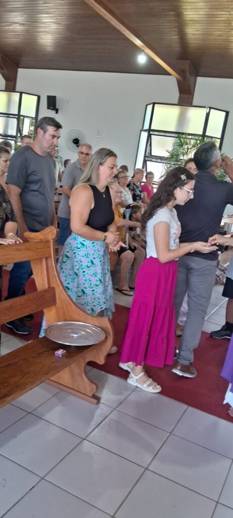 A celebração teve a presença especial do grupo Mc’Coys, que contagiou a comunidade com seus louvores, com seus cantos alegres, tornando a celebração ainda mais significativa. Durante o culto, também foi acolhido com carinho o casal de novos membros, Valdecir e Viviane Barcelos, que passam a caminhar junto com a comunidade na fé e na missão. Ainda houve a Santa Ceia, momento de comunhão e renovação espiritual, seguido por um delicioso almoço compartilhado entre os membros e amigos da comunidade.
