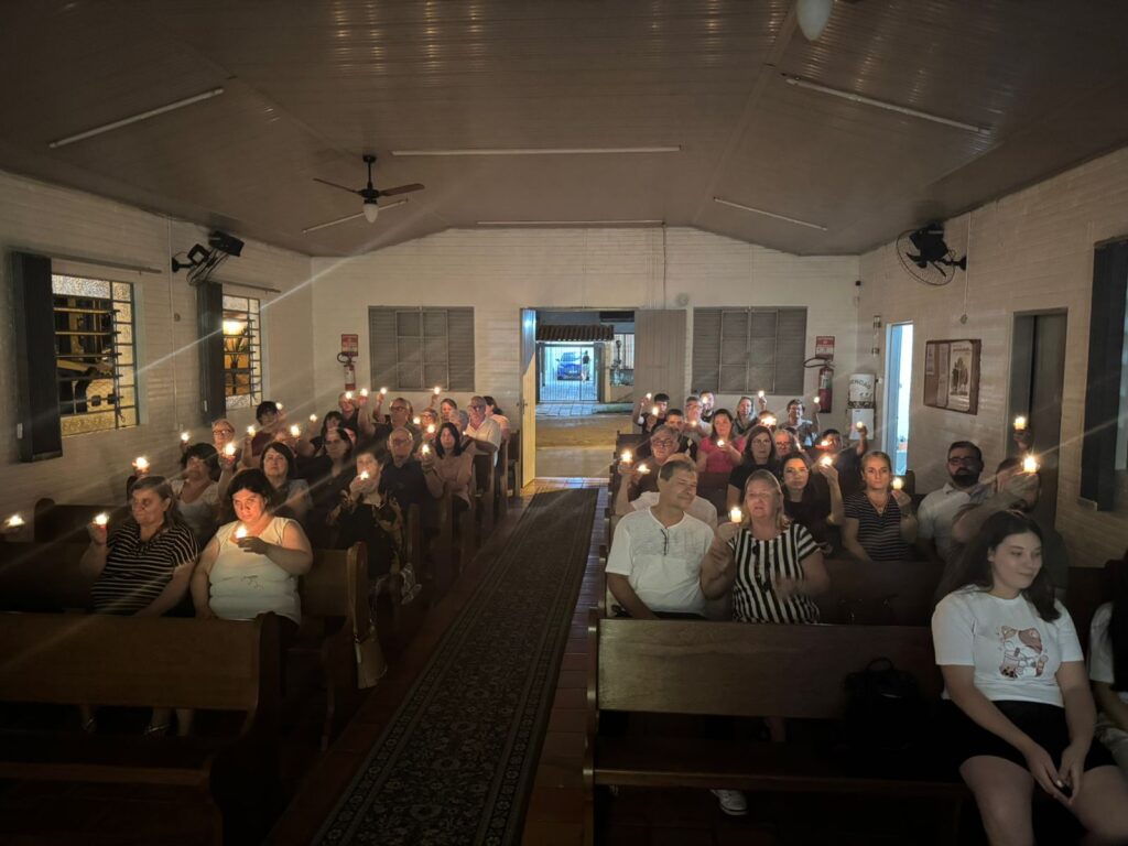O momento mais marcante da celebração ocorreu quando o templo esteve iluminado apenas pelas velas, revelando de forma visual e simbólica que a luz se multiplica quando é compartilhada, pois uma vela acesa toca outra, e logo o que era escuridão se torna claridade. Gesto que simbolizou a vida em comunidade e a fé vivida com propósito.