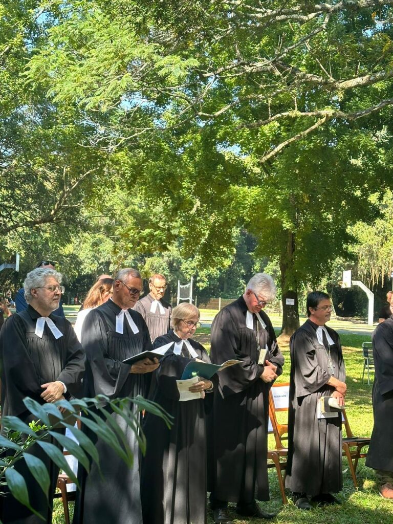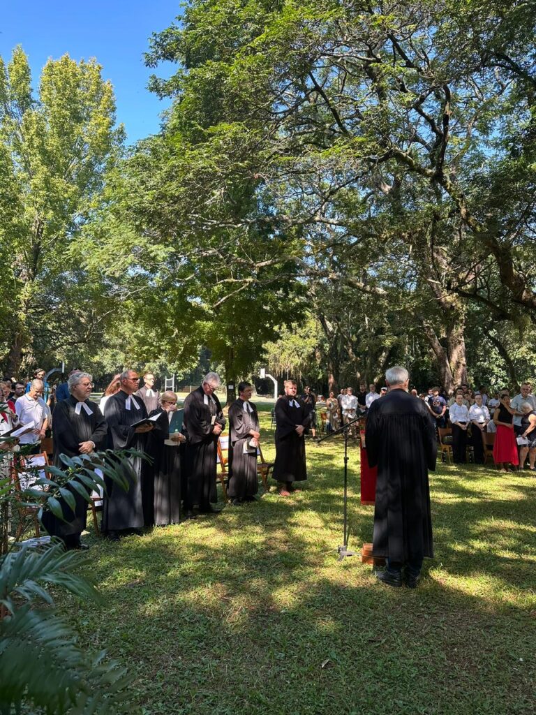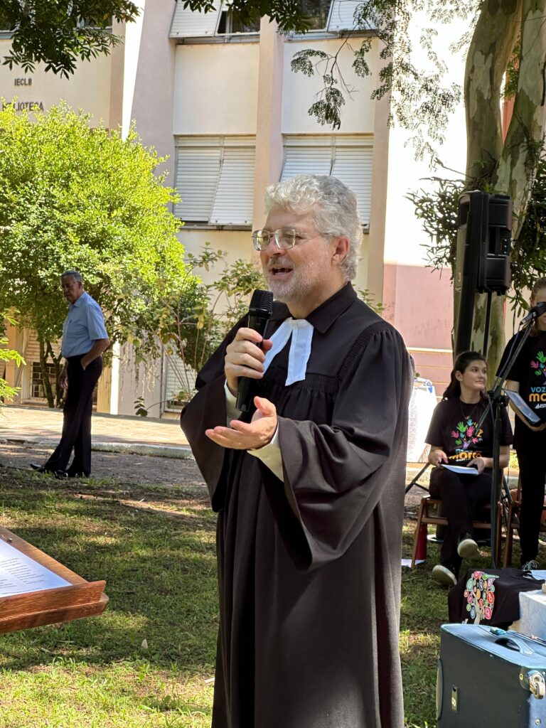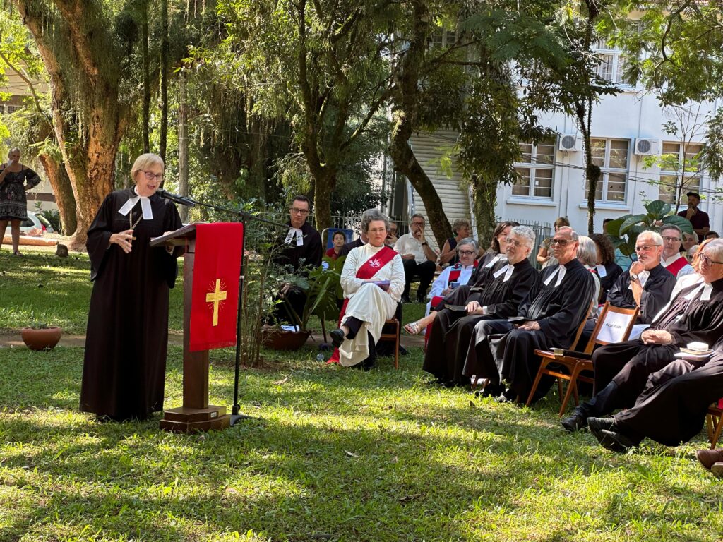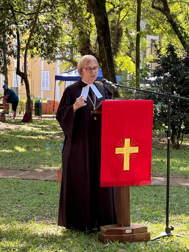Durante sua fala, a pastora presidente sintetizou o sentimento do momento: “Gratidão é o que expressamos para a caminhada que foi e ainda para a caminhada que vem”. Ao refletir sobre o Evangelho de Mateus 4.23-25, destacou o papel do ensino e do cuidado com as pessoas. “Jesus ensinava e anunciava o Evangelho, cuidando de quem estava à margem”, afirmou, ao relacionar a missão cristã com a realidade social.