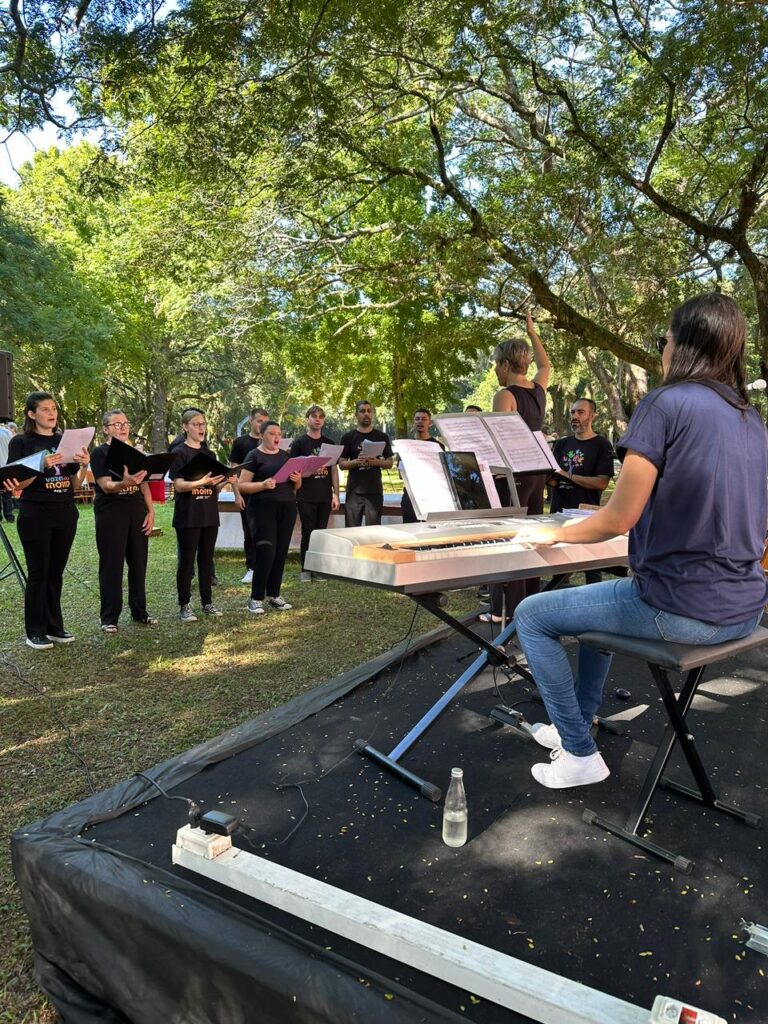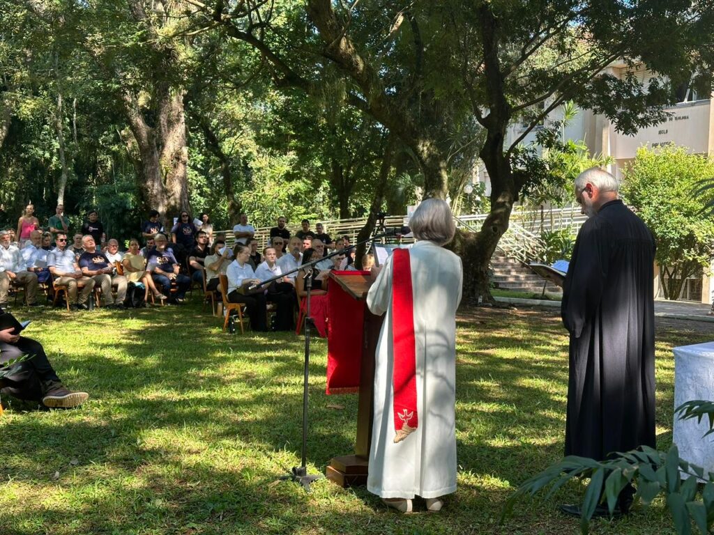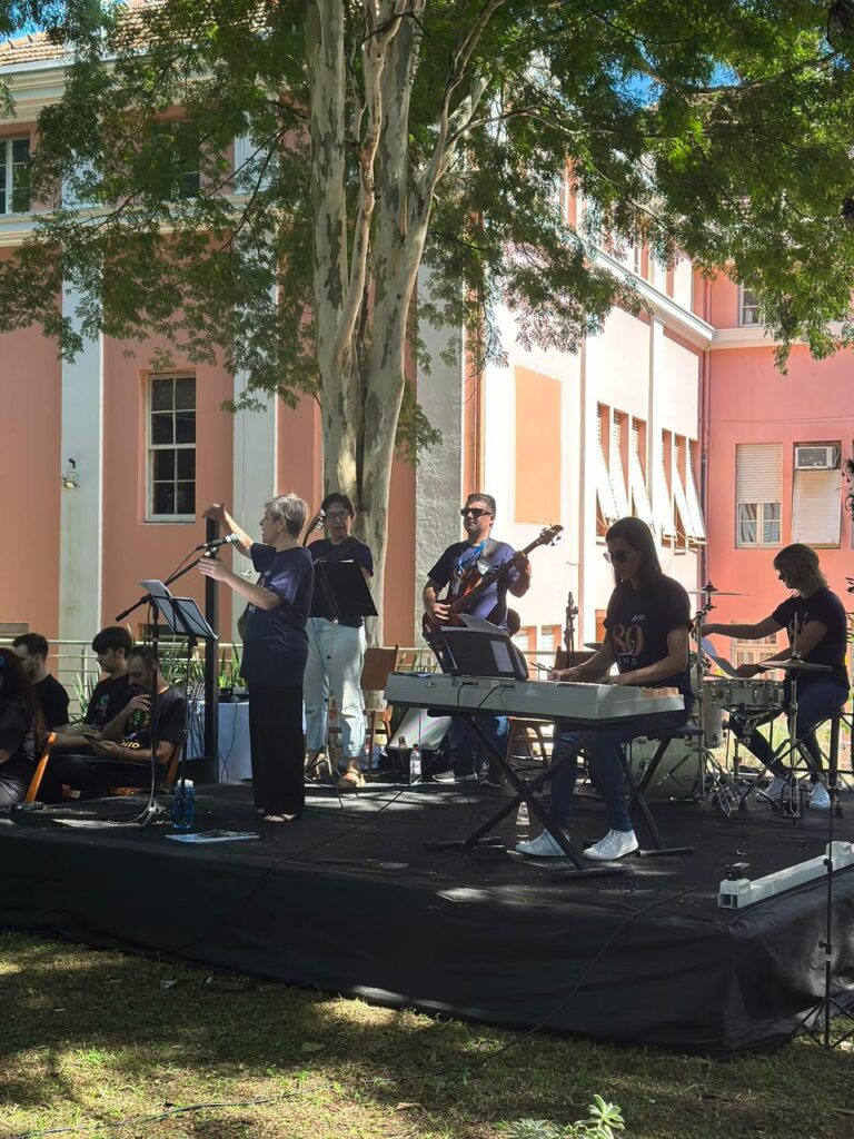 Ao final, pastora Silvia fez um apelo à continuidade do projeto institucional. “Foi construído tijolo por tijolo. E não vamos permitir que o mundo derrube esses tijolinhos”, disse. “Vamos nos unir para que esse sonho continue sendo realidade.” A parte musical do culto foi conduzida pelo Coral Vozes do Morro e por pessoas docentes dos cursos de Licenciatura em Música e Musicoterapia.