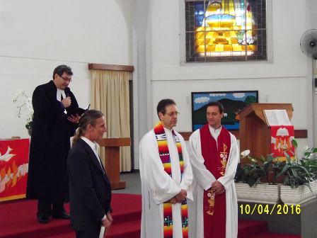 Culto de Investidura na Comunidade do Salvador, em Porto Alegre, dia 10 de abril de 2016. O investido, P. Jorge Batista Dietrich de Oliveira diz:”Minha gratidão a Deus, aos membros da Comunidade do Salvador, ao Pastor Carlos Bock e aos demais colegas e amigos que nos acompanharam neste momento tão importante”.