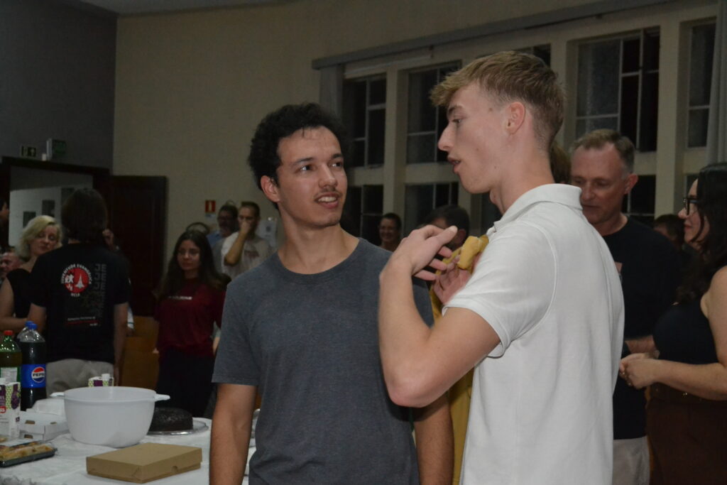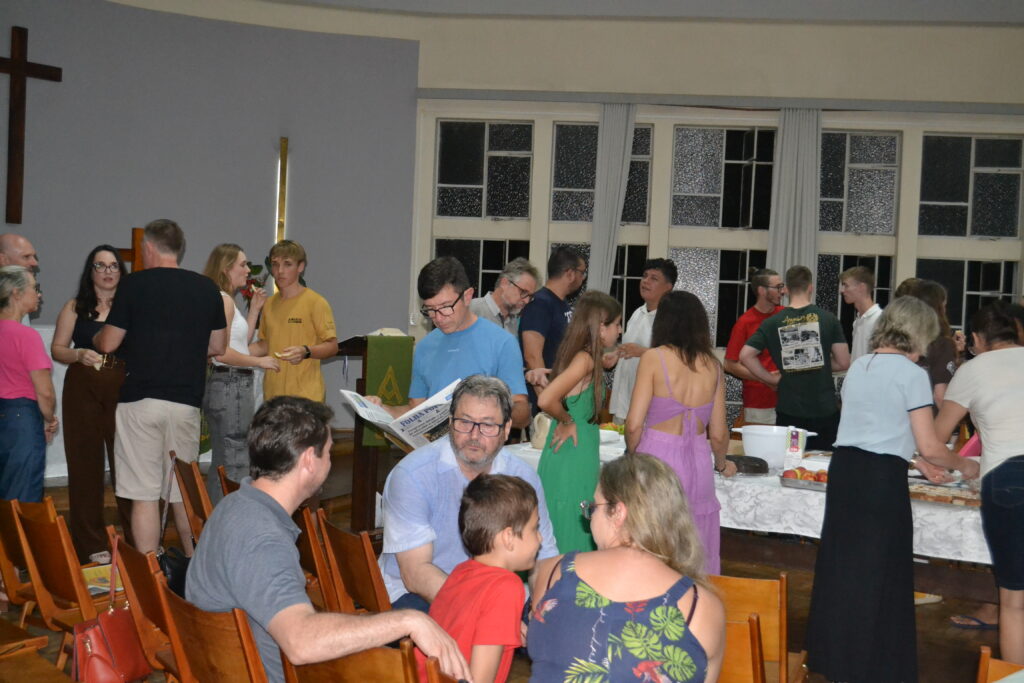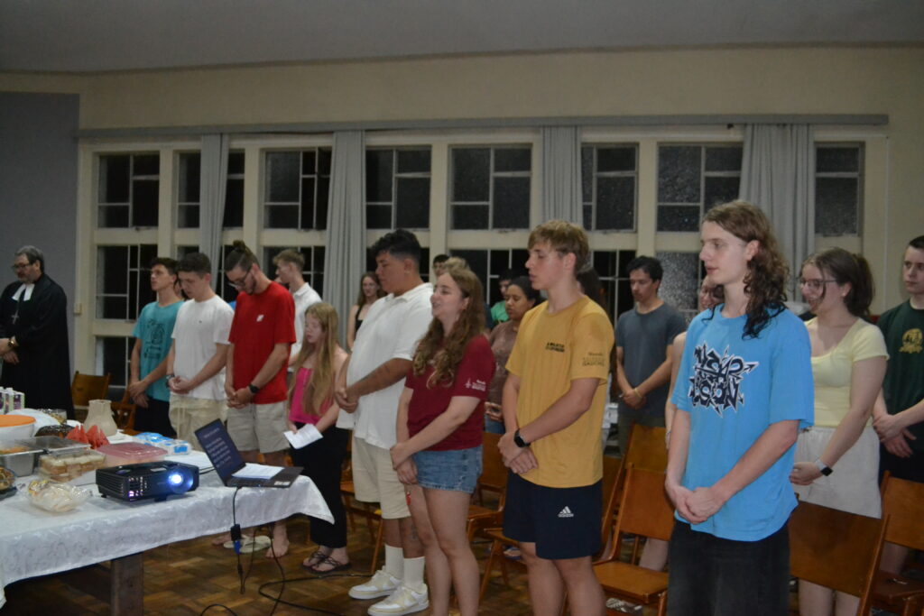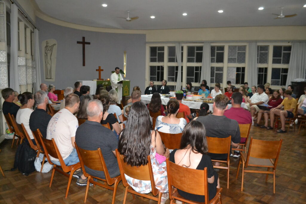O culto de encerramento, realizado no estilo Ágape e em três línguas (português, alemão e inglês), reuniu as pessoas jovens intercambistas e as famílias do grupo brasileiro na capela do prédio S da Faculdades EST, em São Leopoldo. Um misto de alegria e já de saudade marcou a celebração e reforçou os impactos do intercâmbio na vida das pessoas jovens, fortalecendo vínculos de amizade, comunhão e fé.